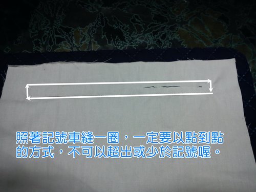 4. 照著記號車縫一圈,一定要以點到點的方式,不可以超出或少於記號。