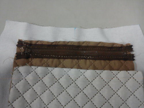 8. 將拉鍊以珠針固定好位置後,縫於口袋內則。